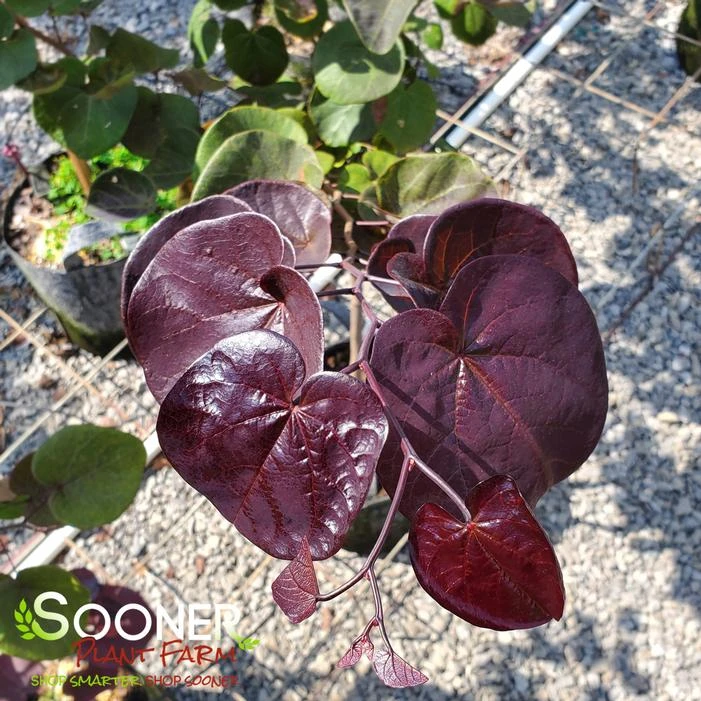 Buy Merlot Redbud online. Is a deciduous tree that sports large rounded glossy dark purple leaves; its tight dense habit make it perfect for smaller yards. Strong, bright pink sweetpea-like blooms are borne on the bare stems in early spring.