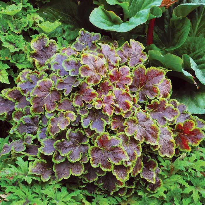 Buy Solar Eclipse Foamy Bells online. Has leaves that are red brown and bordered in lime green combined with such a beautiful habit and broadly scalloped leaf edges. Forming a vigorous mound of dense crowns, ‘Solar Eclipse’ has it all!